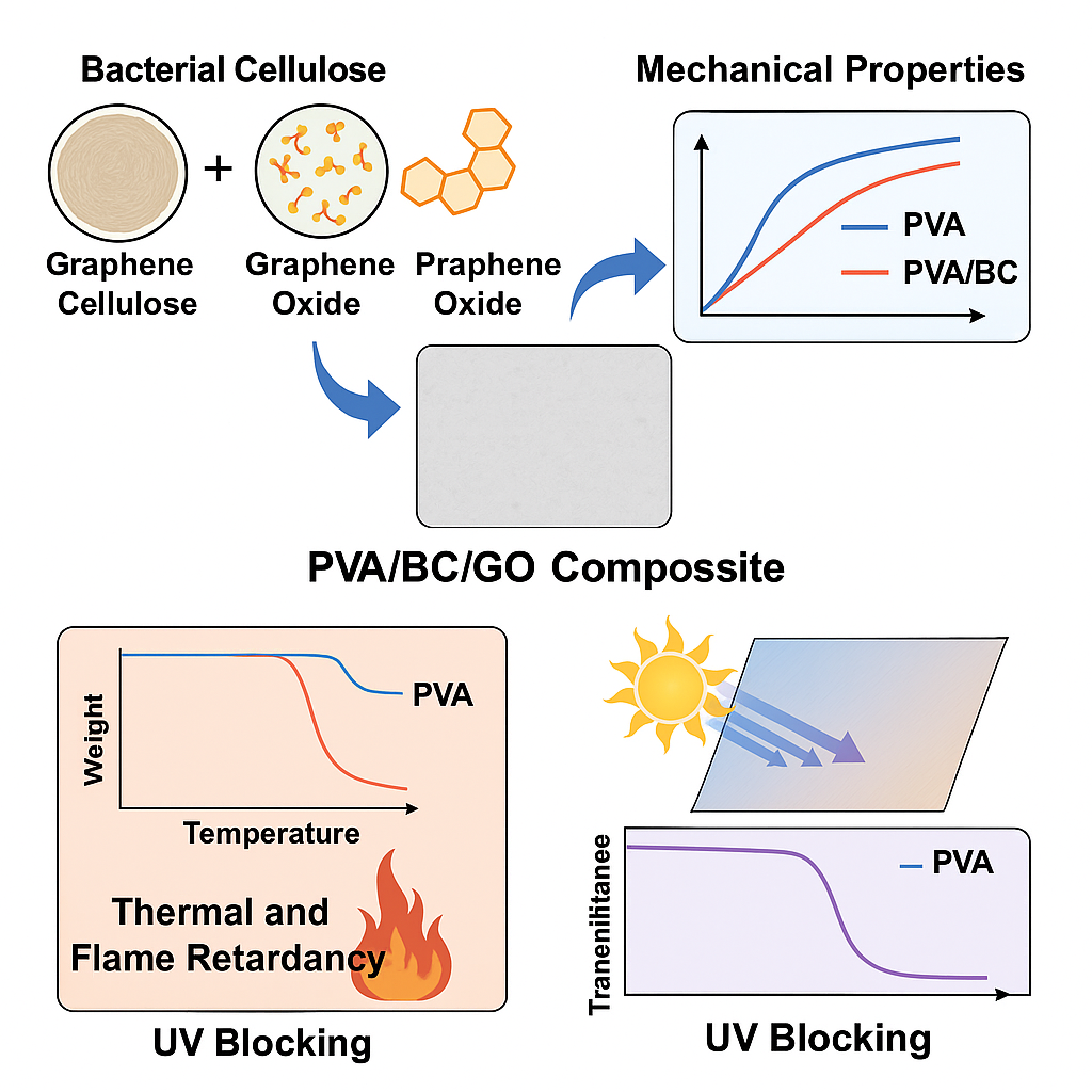 Bacterial cellulose (BC), Graphene oxide (GO), Polyvinyl alcohol (PVA), Bio-based composite films, Mechanical properties, Flame retardancy, Thermal stabilityAbstract