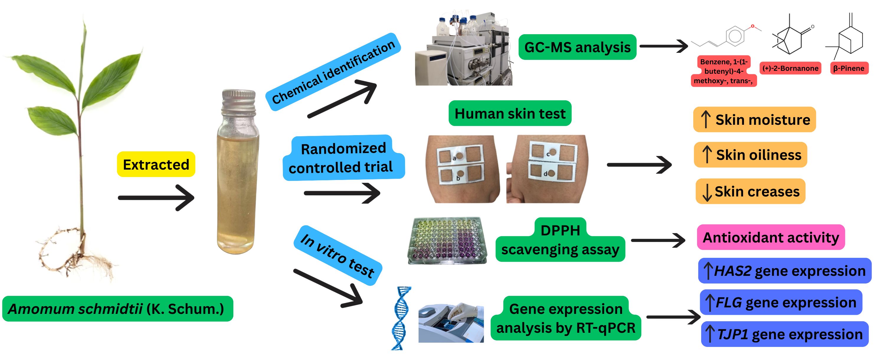 - Topical use of Amomum schmidtii (K. Schum.) enhanced skin oiliness, potentially supporting barrier function.