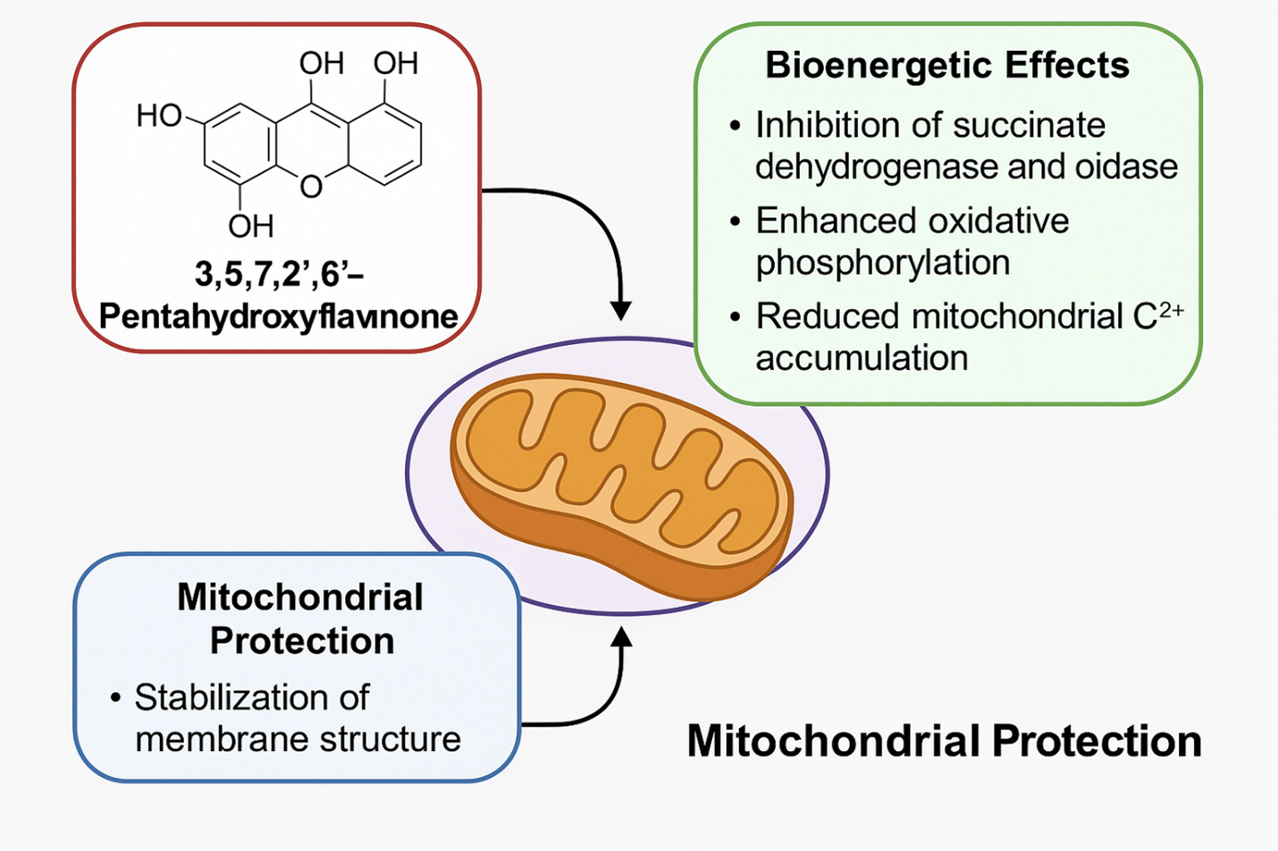 3,5,7,2′,6′-Pentahydroxyflavanone; Mitochondrial respiration; Oxidative phosphorylation; Calcium accumulation; Membrane stabilization; Dehydrogenase activity; ADMET profiling; Cytochrome P450; Flavonoid; Cytoprotection; Pharmacokinetics; In vitro; In vivoAbstract