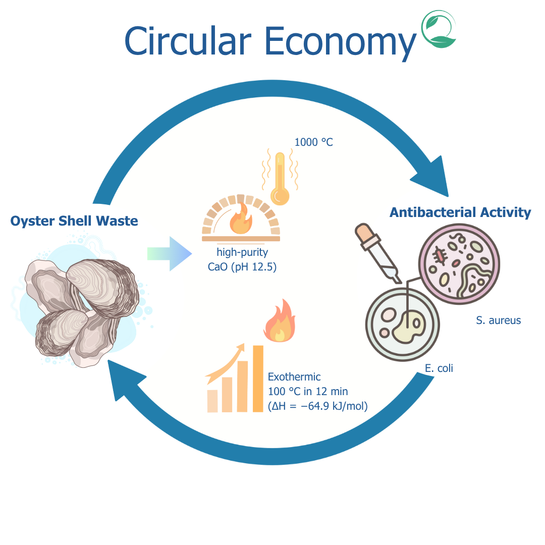 - Oyster shell waste is successfully utilized as a sustainable raw material to produce high-purity calcium oxide (CaO).