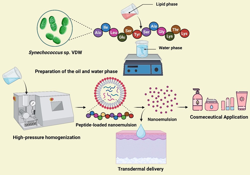 Colloidal stability, Cosmetic formulation, High-pressure homogenization, Nanoemulsion, Peptide delivery, SynechococcusAbstract