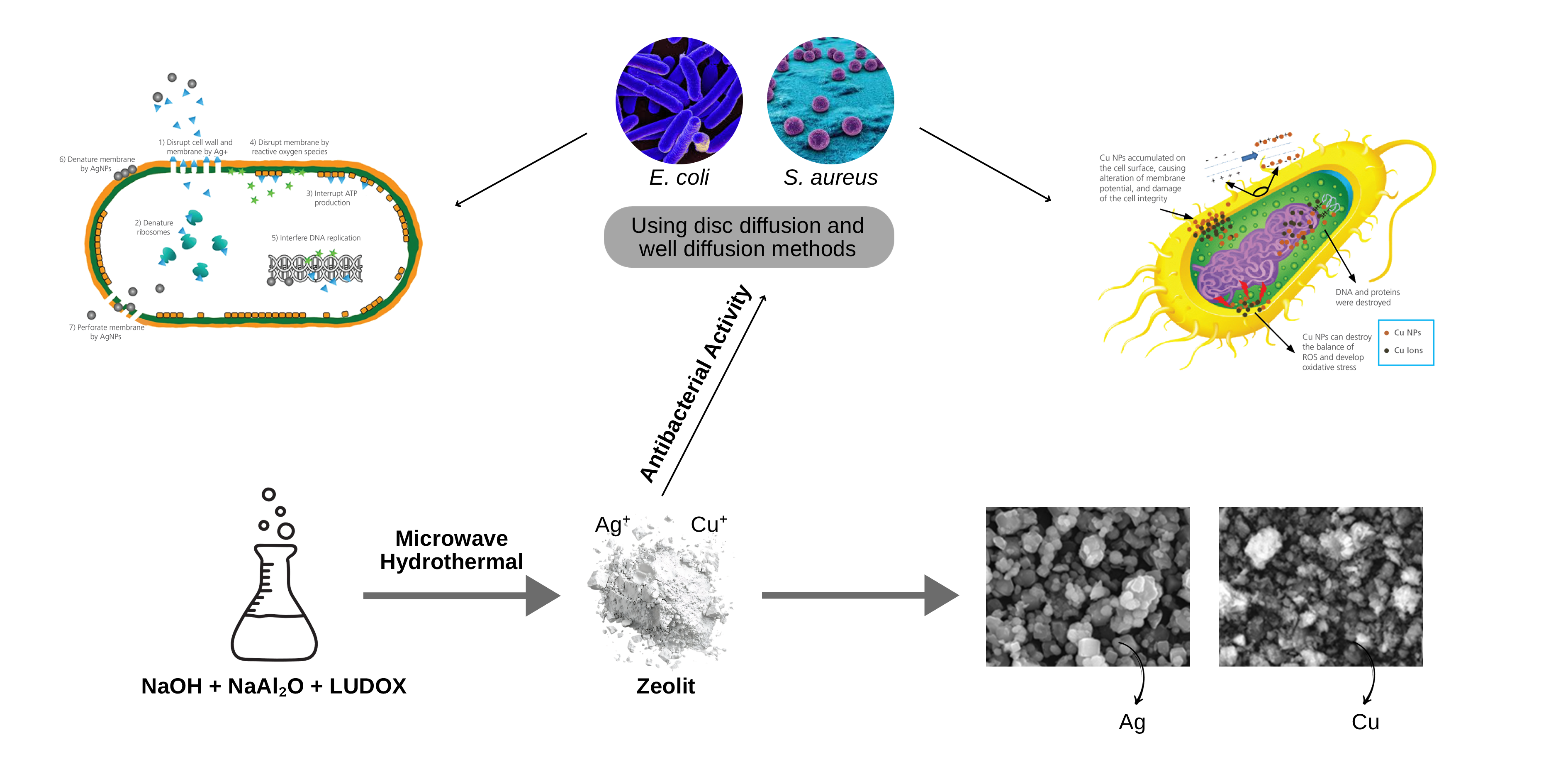 G Yao, J Lei, W Zhang, C Yu, Z Sun, S Zheng and S Komarneni. Antimicrobial activity of X zeolite exchanged with Cu(2+) and Zn(2+) on escherichia coli and staphylococcus aureus. Environmental Science and Pollution Research International 2019; 26(3), 2782-2793.