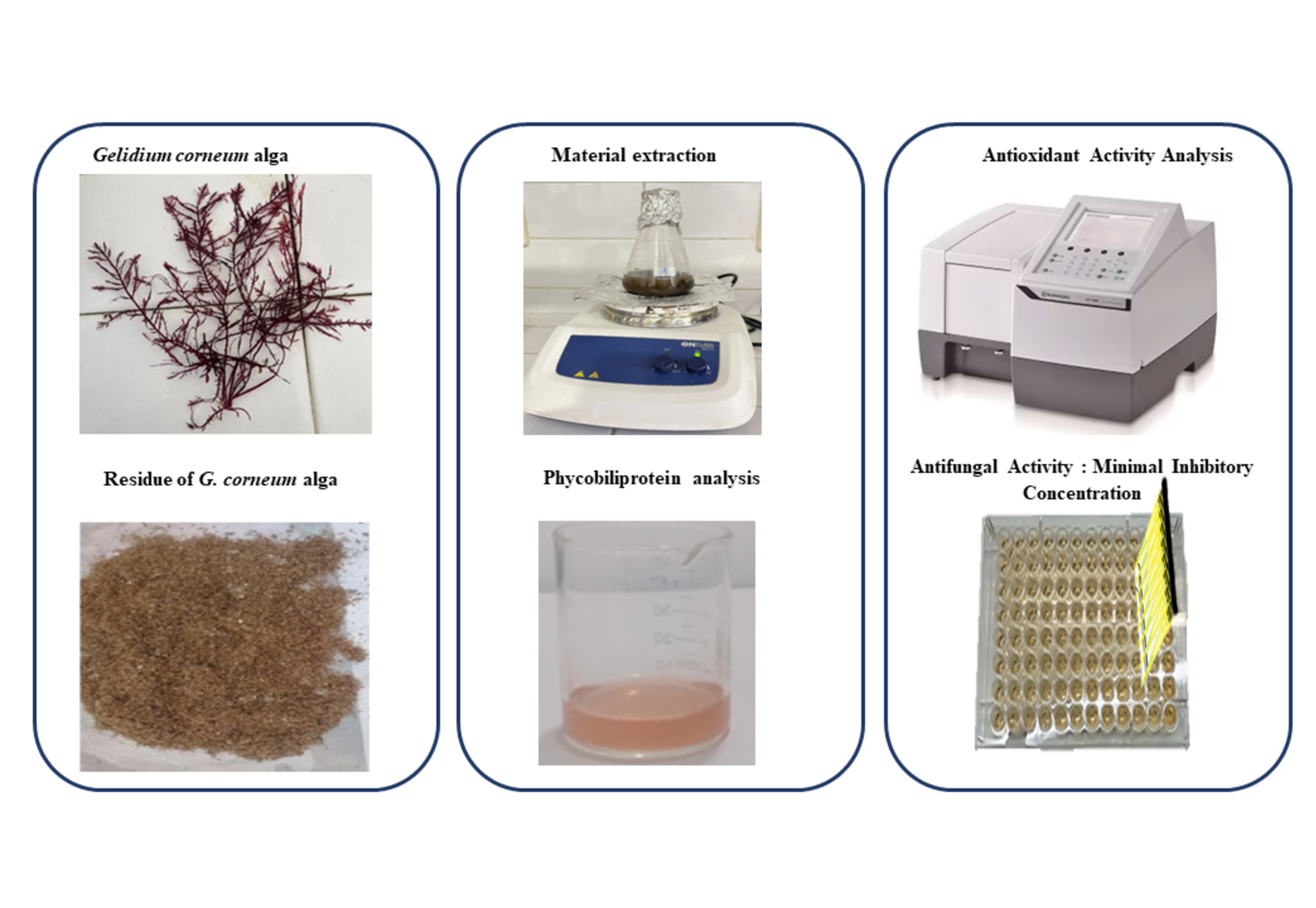 G. corneum alga, By-products, Antioxidant, Antifungal, Phytopigment, Total phenolic content, Total flavonoid contentAbstract