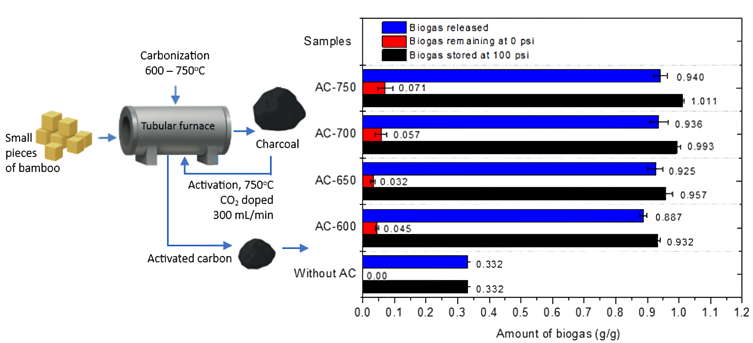 Activated carbon, Biogas, Carbonization temperature, Bamboo, Pore structure, Functional groups, EfficiencyAbstract