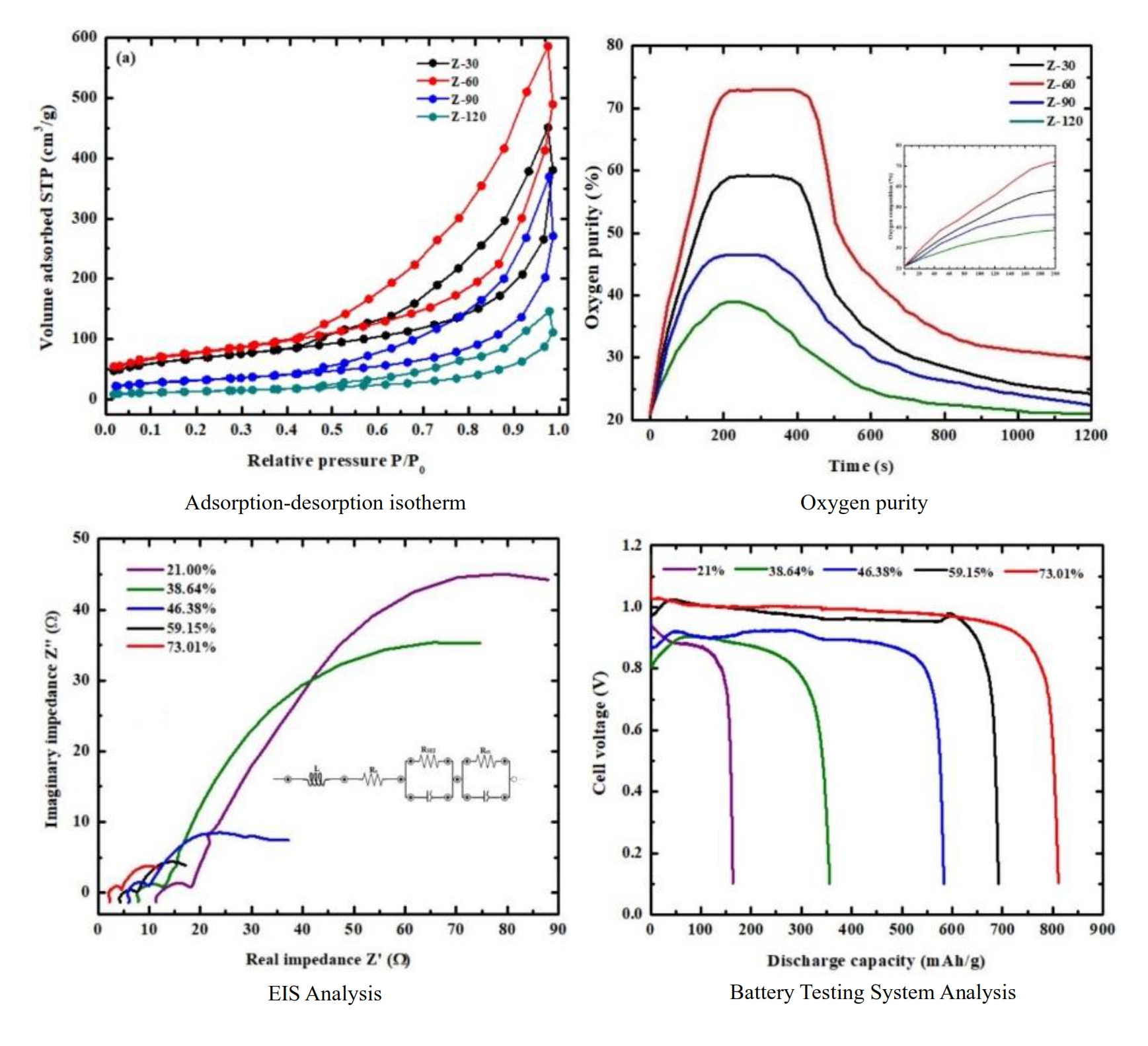 - Higher oxygen purity effectively prevents the formation of pore-clogging discharge products on the cathode surface.