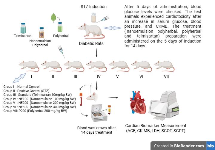 Biomarker cardiotoxic, Cardiac enzyme, Nanoemulsion polyherbal, Diabetic rat, Cardioprotective, Streptozotocin-induced cardiotoxic, NanoencapsulationAbstract