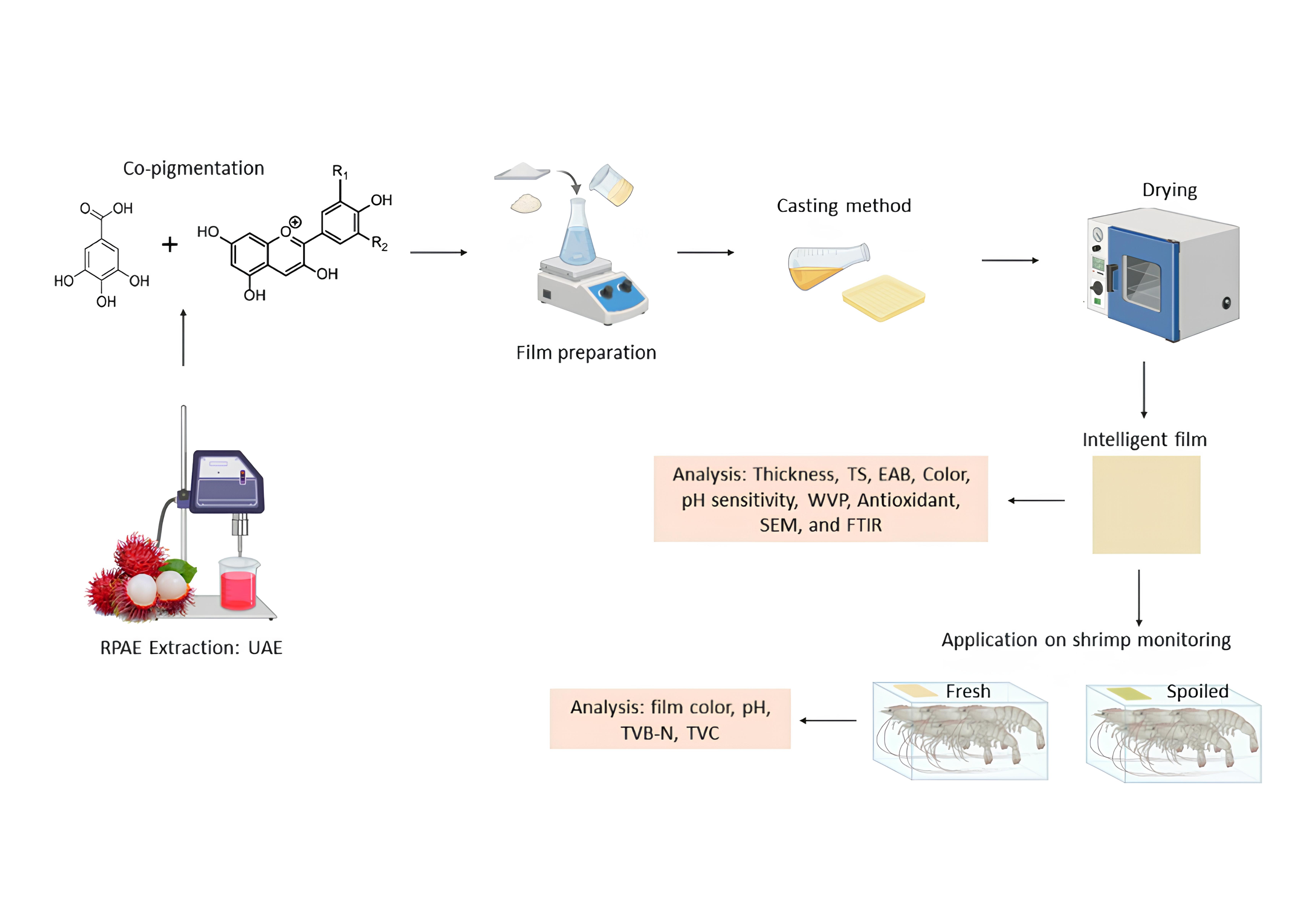 A Ponnusamy, A Khan, T Prodpran, JW Rhim and S Benjakul. Multifunctional fish gelatin film incorporated with chitosan carbon dots and butterfly pea flower anthocyanins for active/smart packaging of Pacific white shrimp. Food Bioscience 2024; 62, 105483.