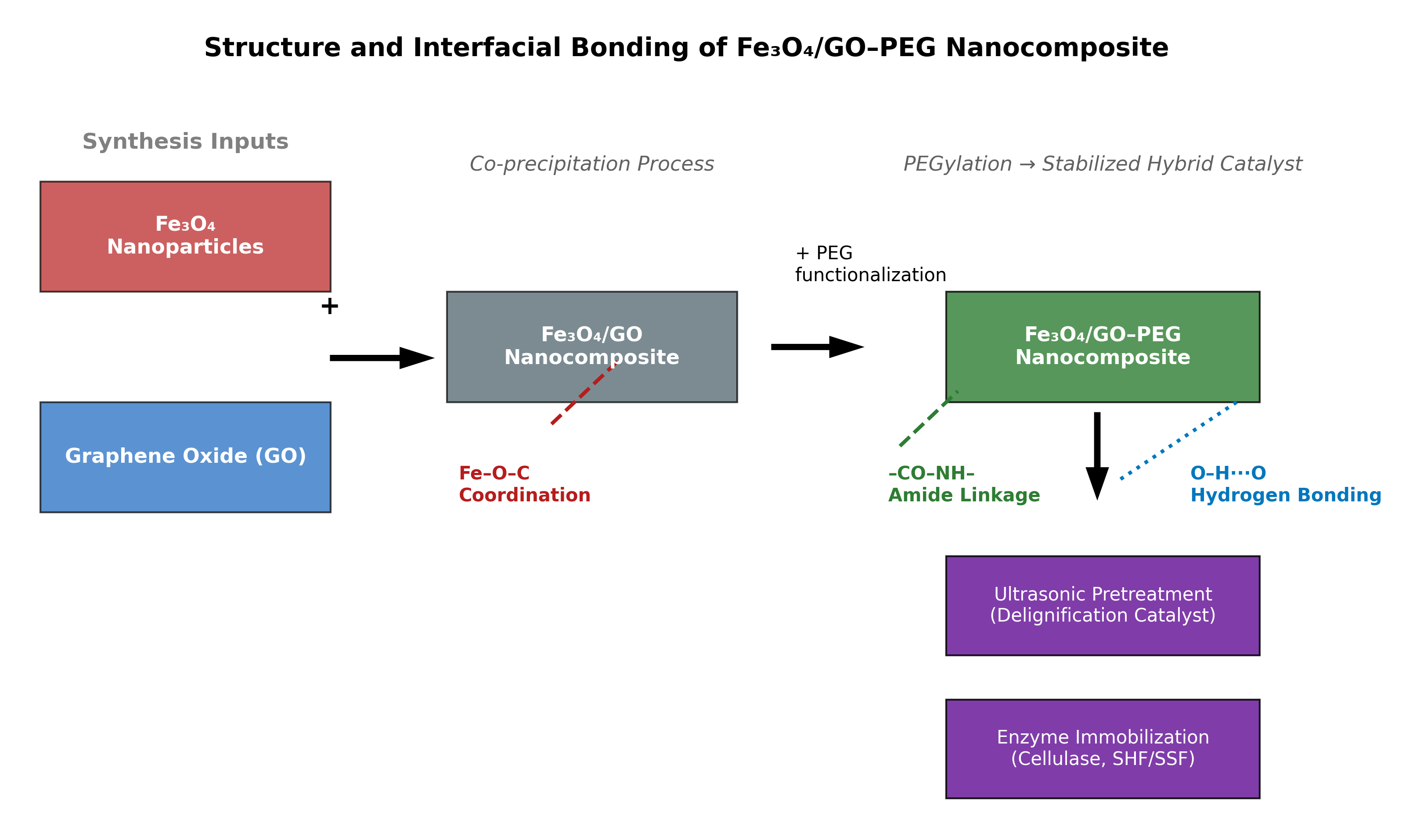 Fe₃O₄/GO–PEG nanocomposite, Coordination bonding, PEG functionalization, Magnetic stability, Delignification catalyst, Enzyme immobilizationAbstract
