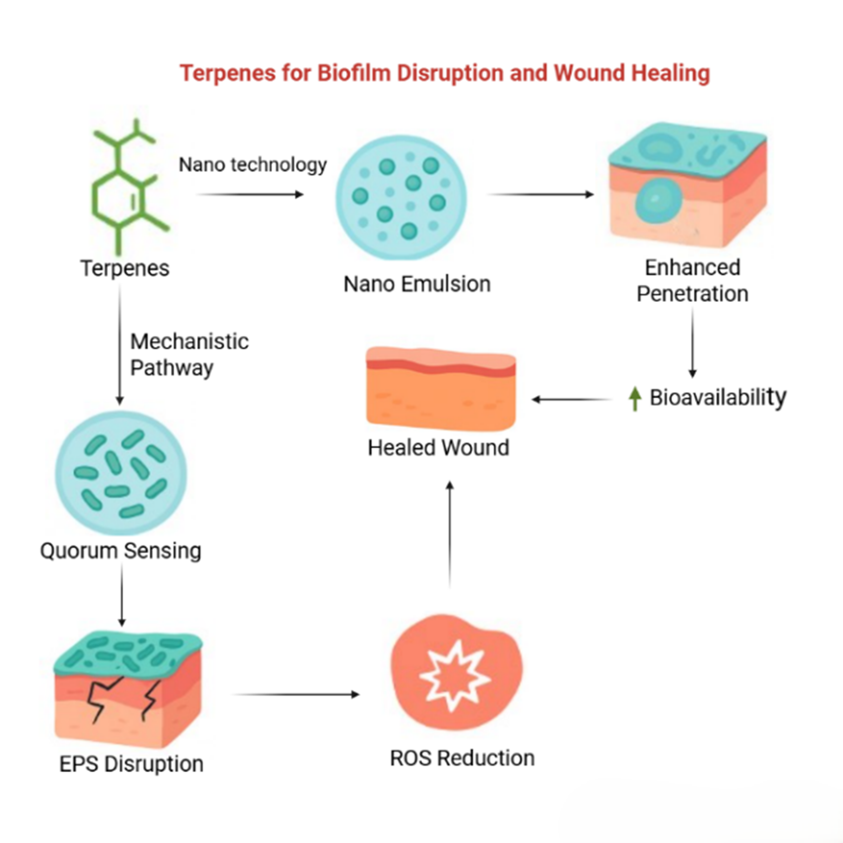 Wound healing, Chronic wounds, Biofilm disruption, Terpene-based phytochemicals, Antibiofilm agents, NanoemulsionsAbstract