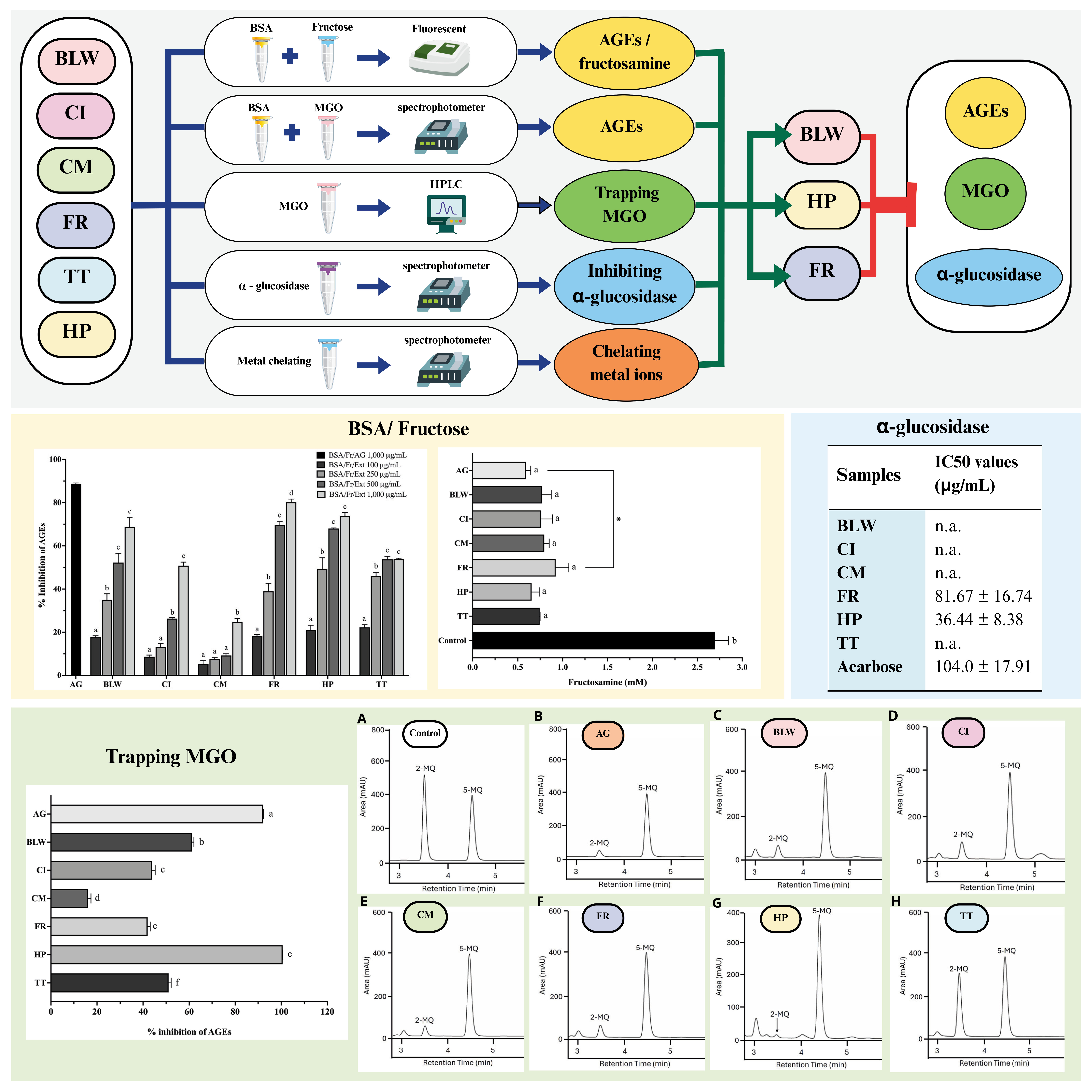 - HP, FR, and BLW hold promise as antiglycation agents for functional foods or therapeutic use.
