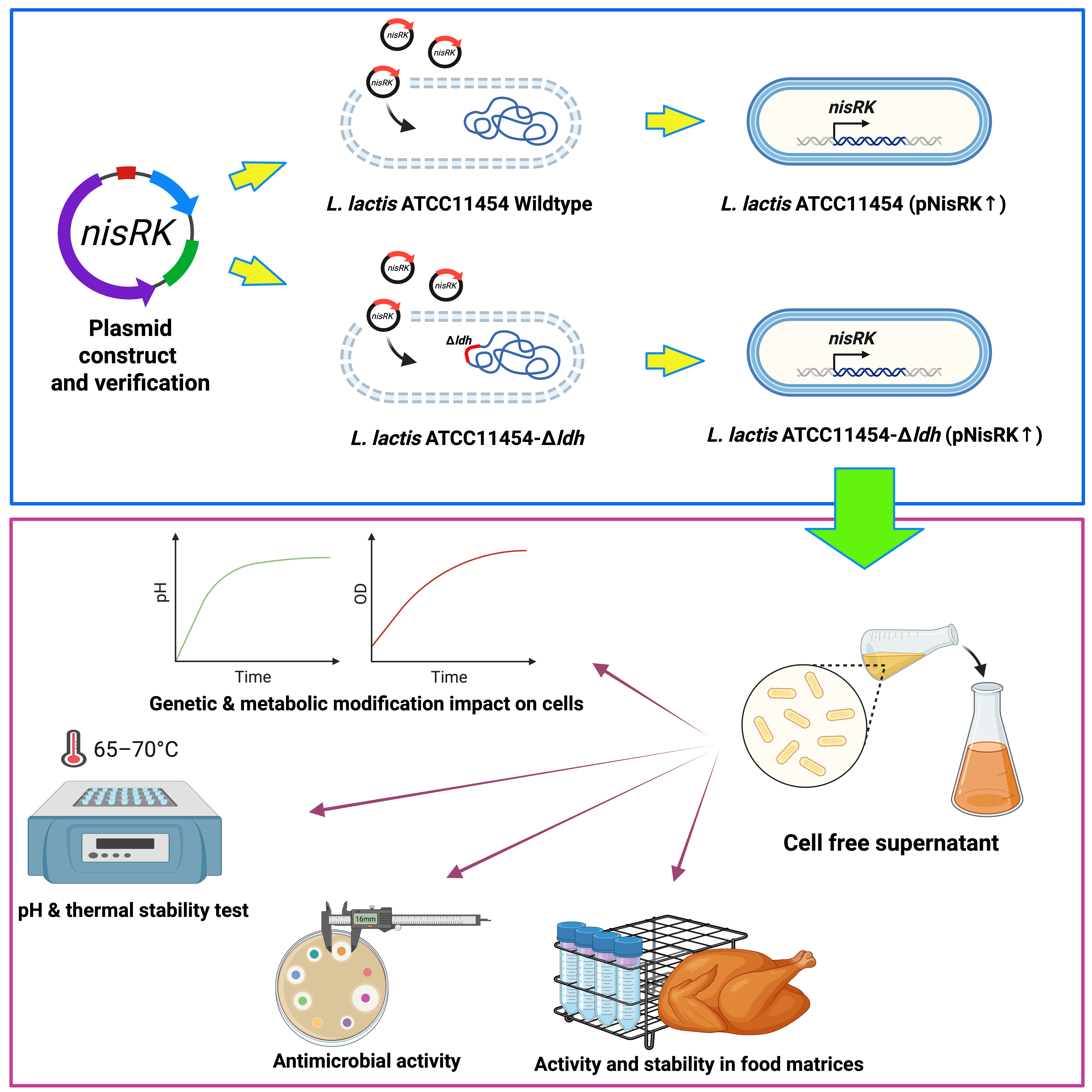 - First report of nisRK overexpression in lactic acid deficient lactis background