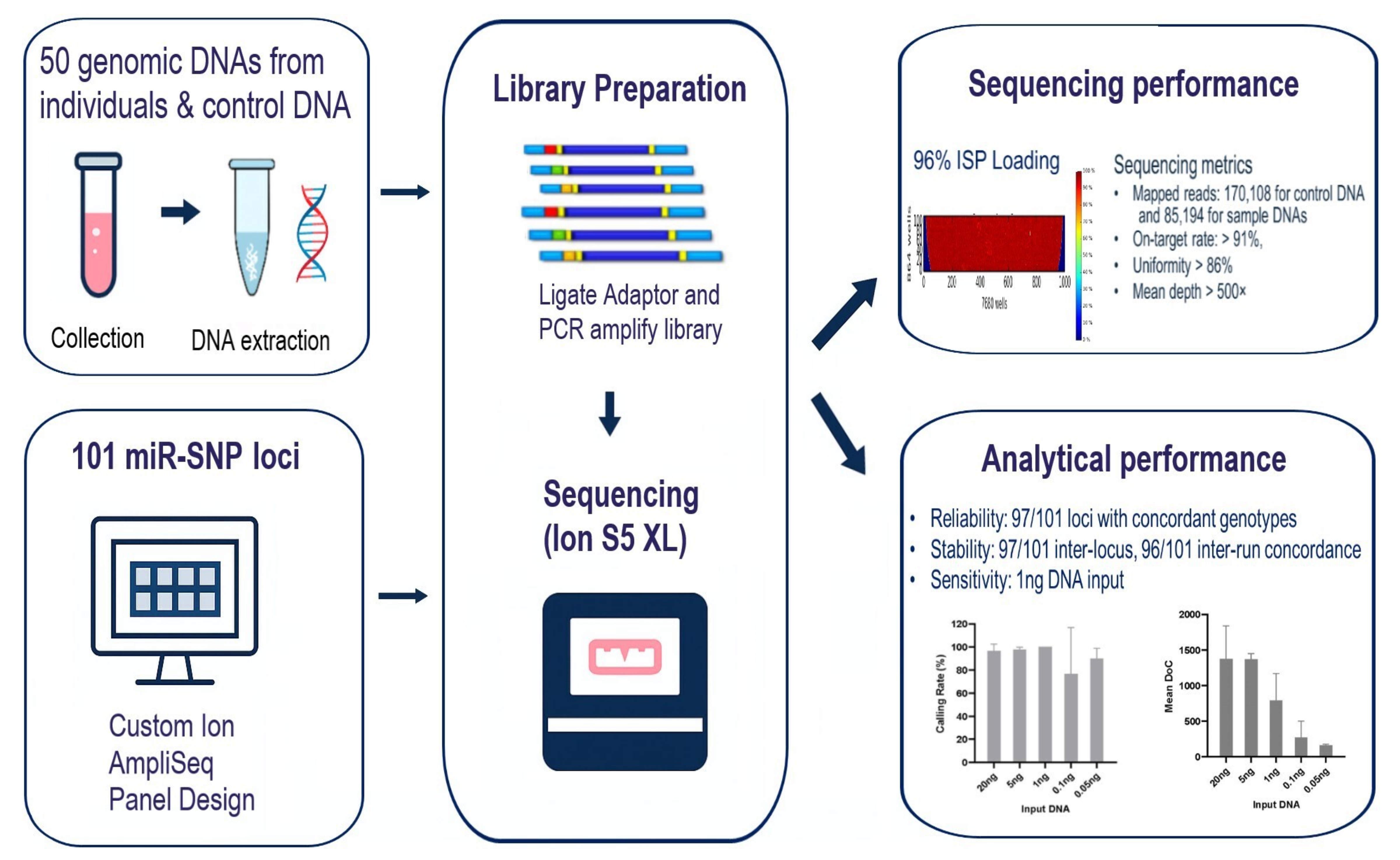 - A 101 germline miR-SNP panel was designed using the Ion AmpliSeq platform.