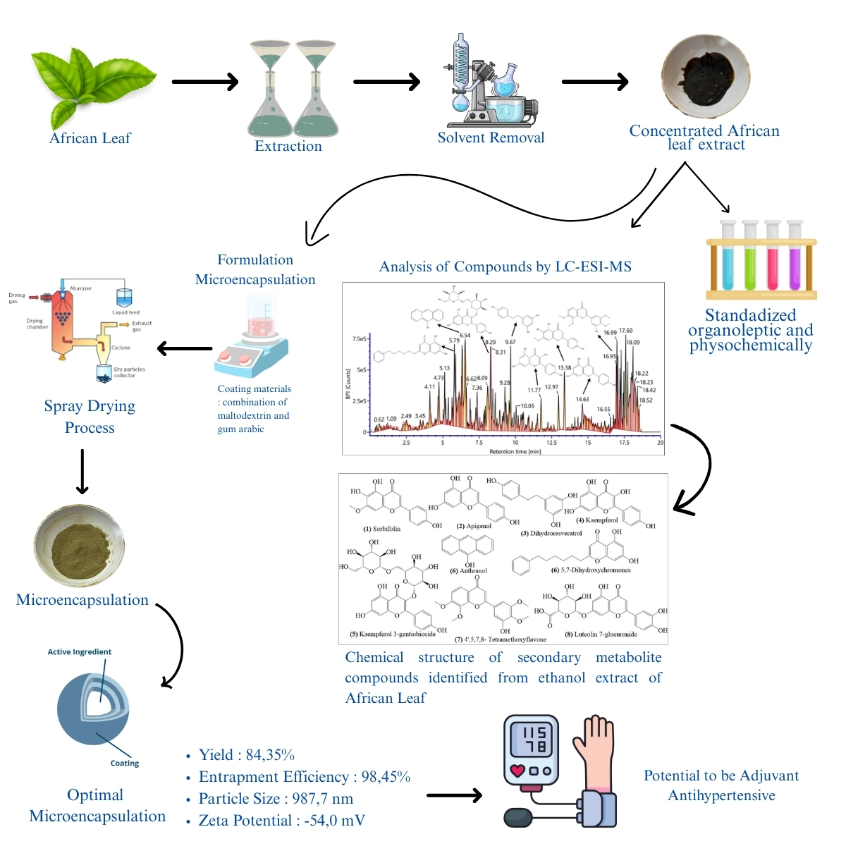 African leaf, LC-ESI-MS characterization, Hypertension, Maltodextrin, Microencapsulation, Vernonia amygdalina, African leaf, LC-ESI-MS characterization, Hypertension, Maltodextrin, Microencapsulation, Vernonia amygdalinaAbstract