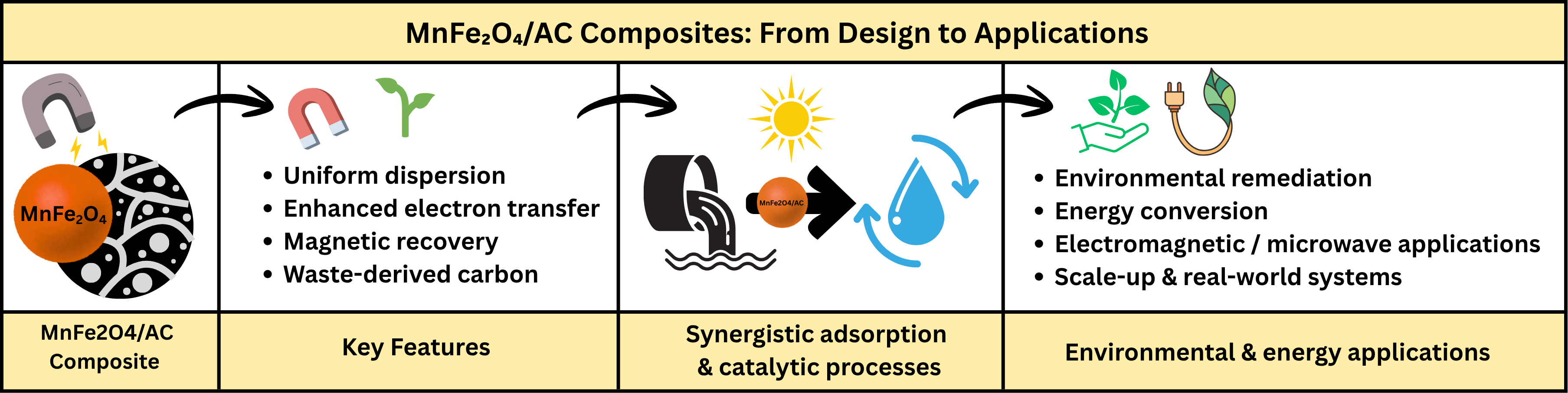 MnFe₂O₄/activated carbon composites, Activated carbon, Manganese ferrite, Adsorption, Photocatalysis, Wastewater treatment, Sustainable synthesis, Multifunctional materialsAbstract