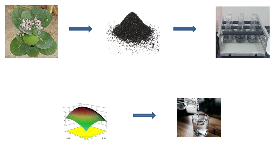 A huge quantity of wastewater is generated and dumped directly into the natural environment. Industrial wastewater recycling is common in India and is mainly used for agriculture in the surrounding areas. This has led to high levels of cadmium and other heavy metals in the air, water, and soil. Natural adsorbents provide an effective solution for wastewater treatment. Wooden objects can be used to remove heavy metals from contaminated water. The current investigation attempts to remove cadmium from the cadmium-containing aqueous solution using the root of Calotropis Procera. The adsorption process was developed with batch studies to quantify the removal of cadmium (Y) using 3 flexible process variables namely, pH, residence time (CT), and adsorbent dose (AD). Interaction between variables, a 20 (23) central composite design (CCD) was developed using the response surface method (RSM). The results of the adsorption verification tests were performed and show excellent compliance with the model prediction. The value of F (550.78) and the return coefficient (R2) of 0.9796 proved the validity of the improved quadratic model.