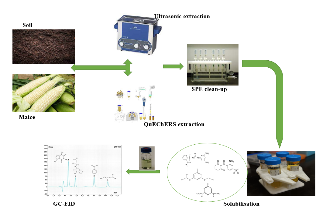 Ultrasonic, QuEChERS, Herbicides, Maize, Soil, Gas chromatography, MRLsAbstract