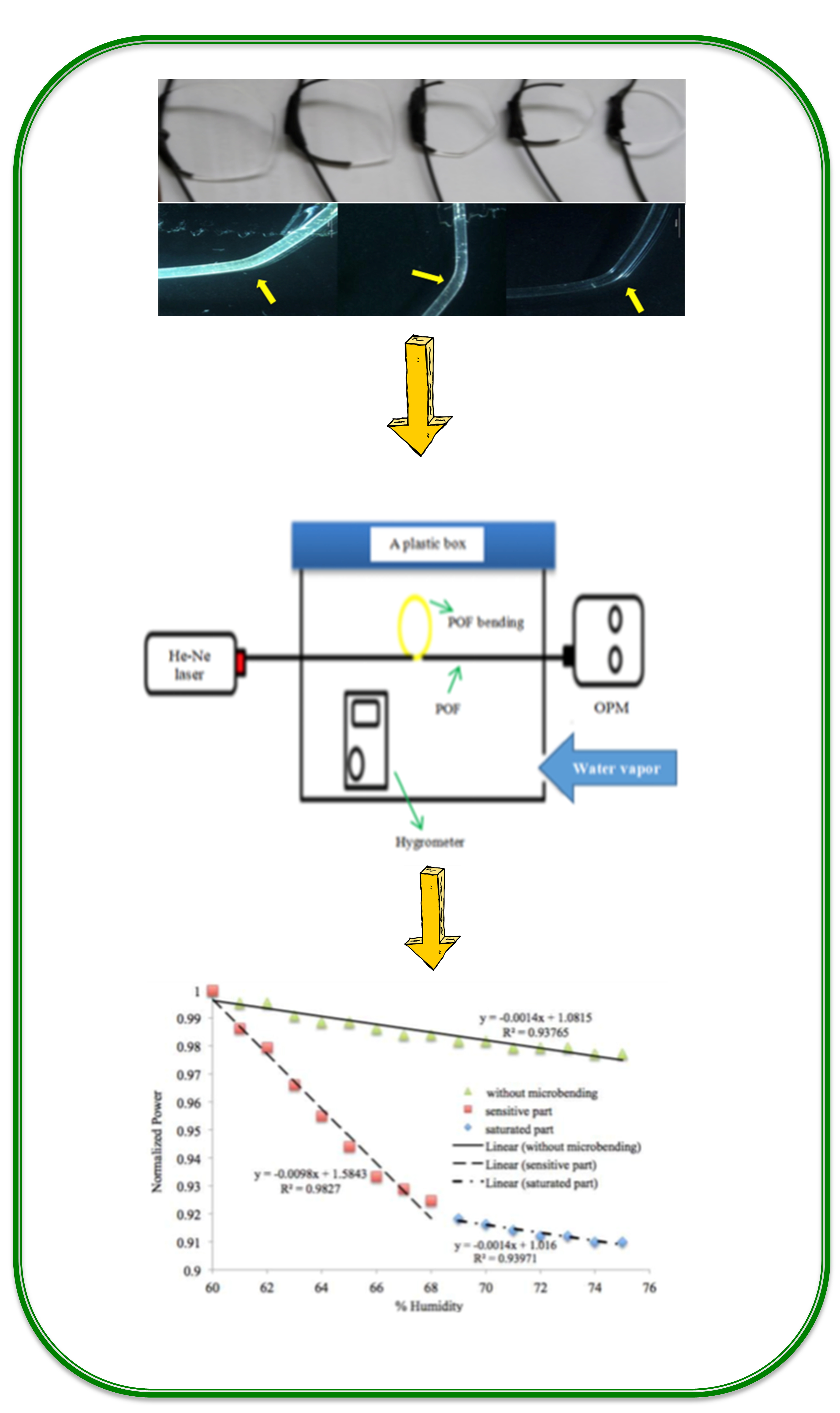 - The result shows that increasing the humidity causes the normalized power to decrease, hence increasing the power loss of the sensing element. Moreover, the sensitivity of the sensing element is increased 10 times for the combined micro and macro bendings compared to a sensing element without micro bendings