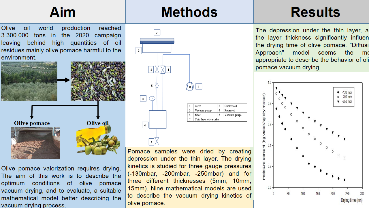 - The Diffusion Approach mathematical model better describes the process of olive pomace vacuum drying