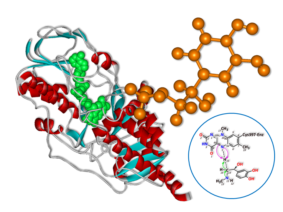 Monoamine Oxidase B, Adrenaline, ONIOM Technique, Deamination Reaction, Hydride Transfer, Nucleophilic Mechanism, InhibitorAbstract
