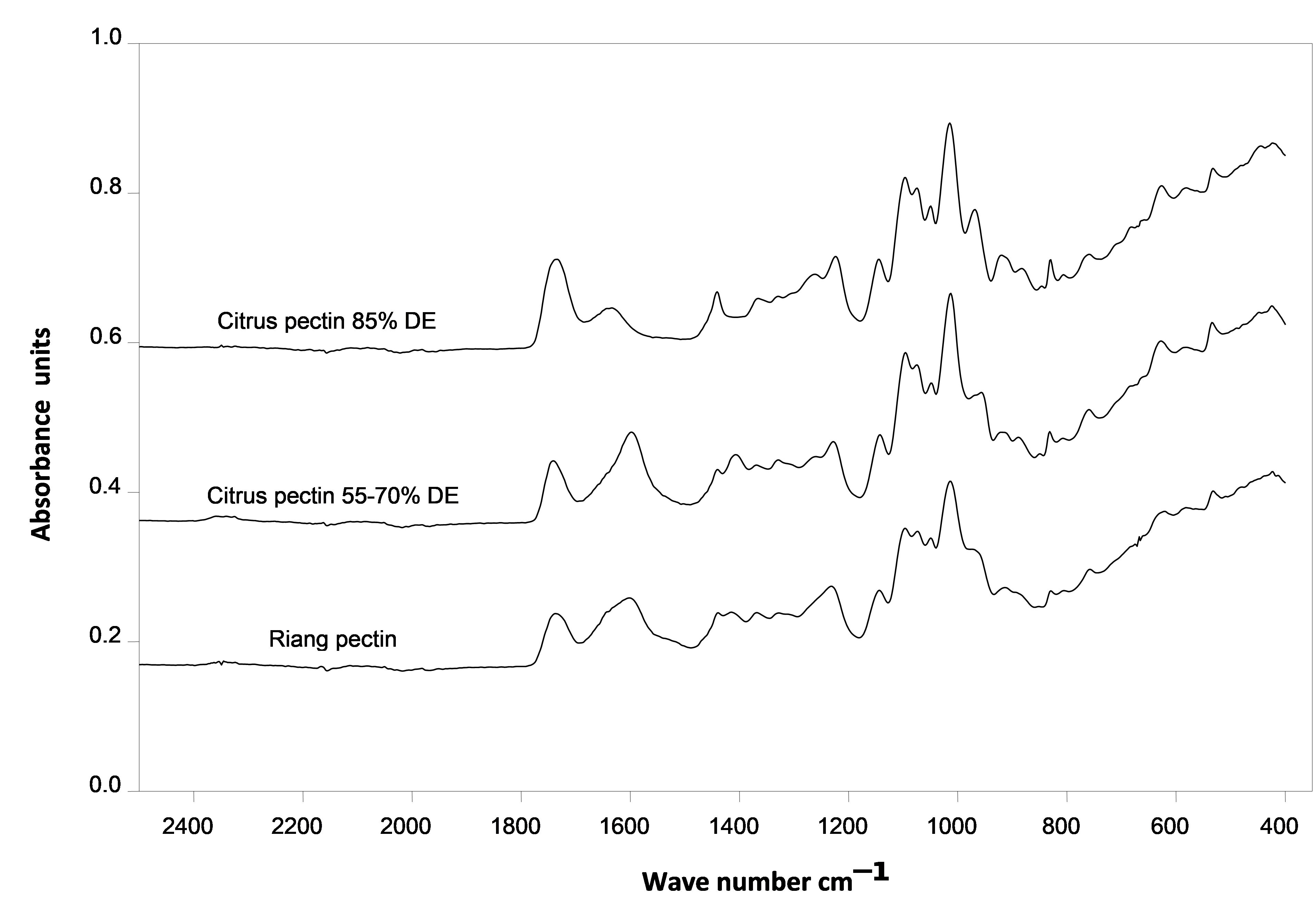 GD Manrique and FM Lajolo. FT-IR spectroscopy as a tool for measuring degree of methyl esterification in pectins isolated from ripening papaya fruit. Postharvest Biol. Tech. 2002; 25, 99-107.