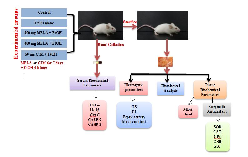 - Oral administration of ethanol to Wistar rats caused ulcer by generation of ROS, inflammation and induce apoptosis