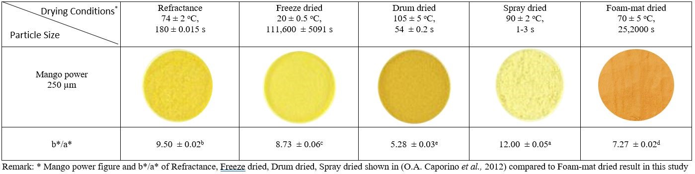 - Mango powder qualities produced by a foam-mat drying as good as that 1 manufacturing using freeze drying and spray drying