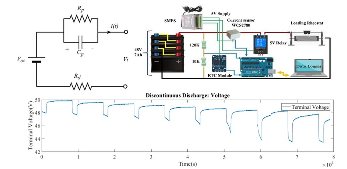 - For the SOC estimation, the open-circuit voltage is obtained by measuring the terminal voltage, current and first-order model of the battery developed under similar climatic condition