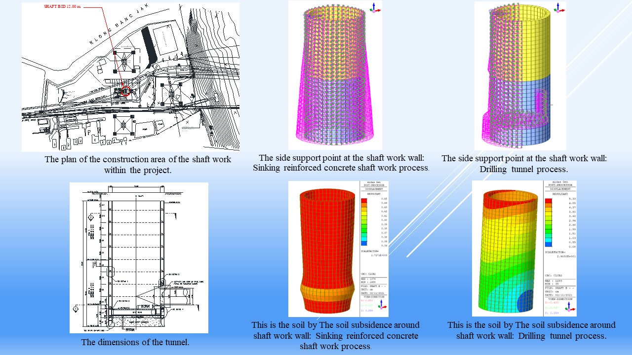 - This research studied the behavior of the shaft work in sinking reinforced concrete shaft work and drilling tunnel process by finite element method (FEM) with the Midas Gen 2021 program