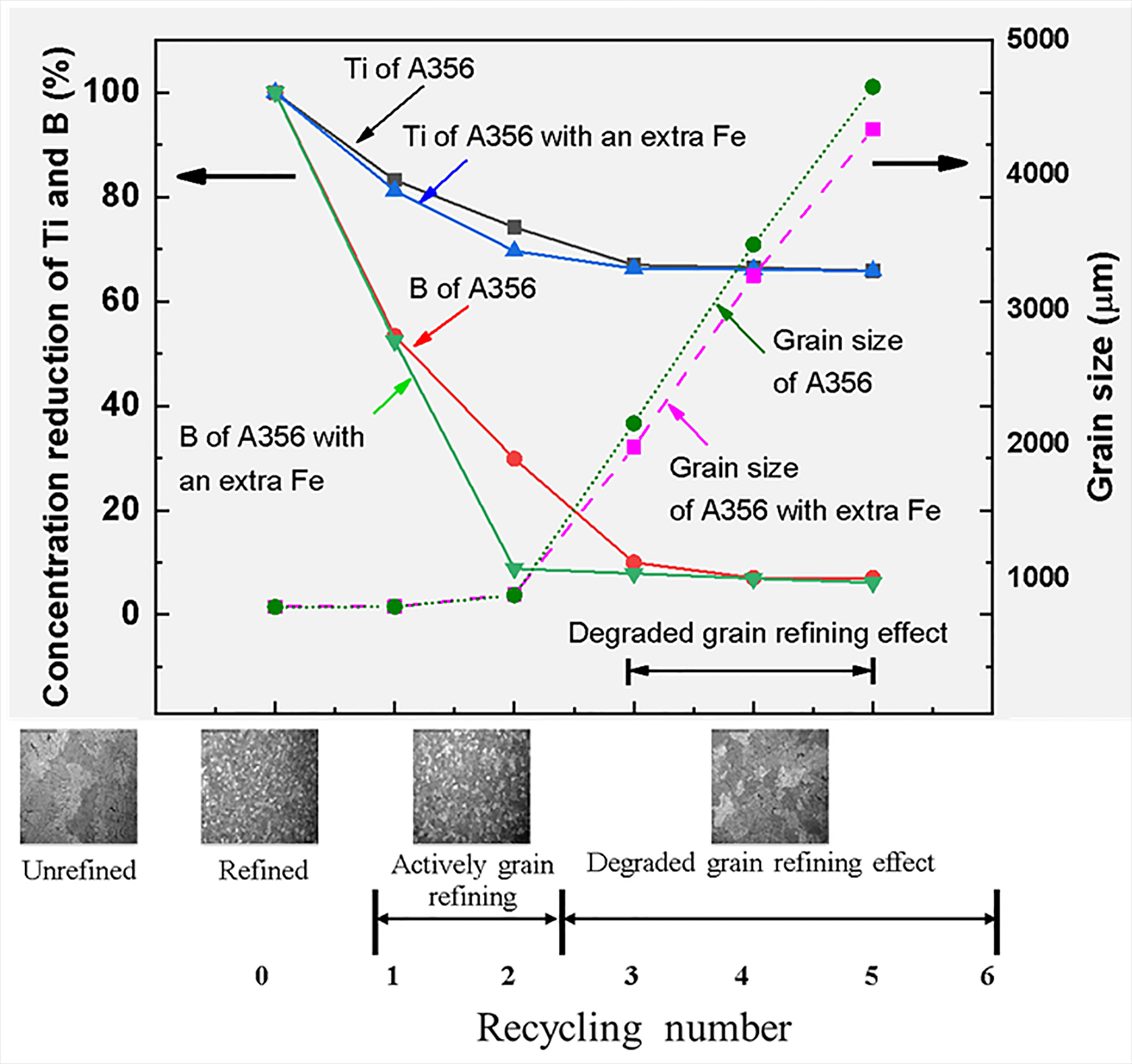 - Significant concern of the recycling process of A356 alloy is the degradation of the grain refining performance of Al-5Ti-1B grain refiner