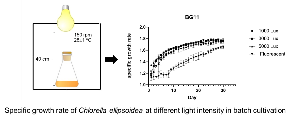 Batch cultivation, Biomass, Chlorella, Growth rate, Light intensity, Media, MicroalgaeAbstract