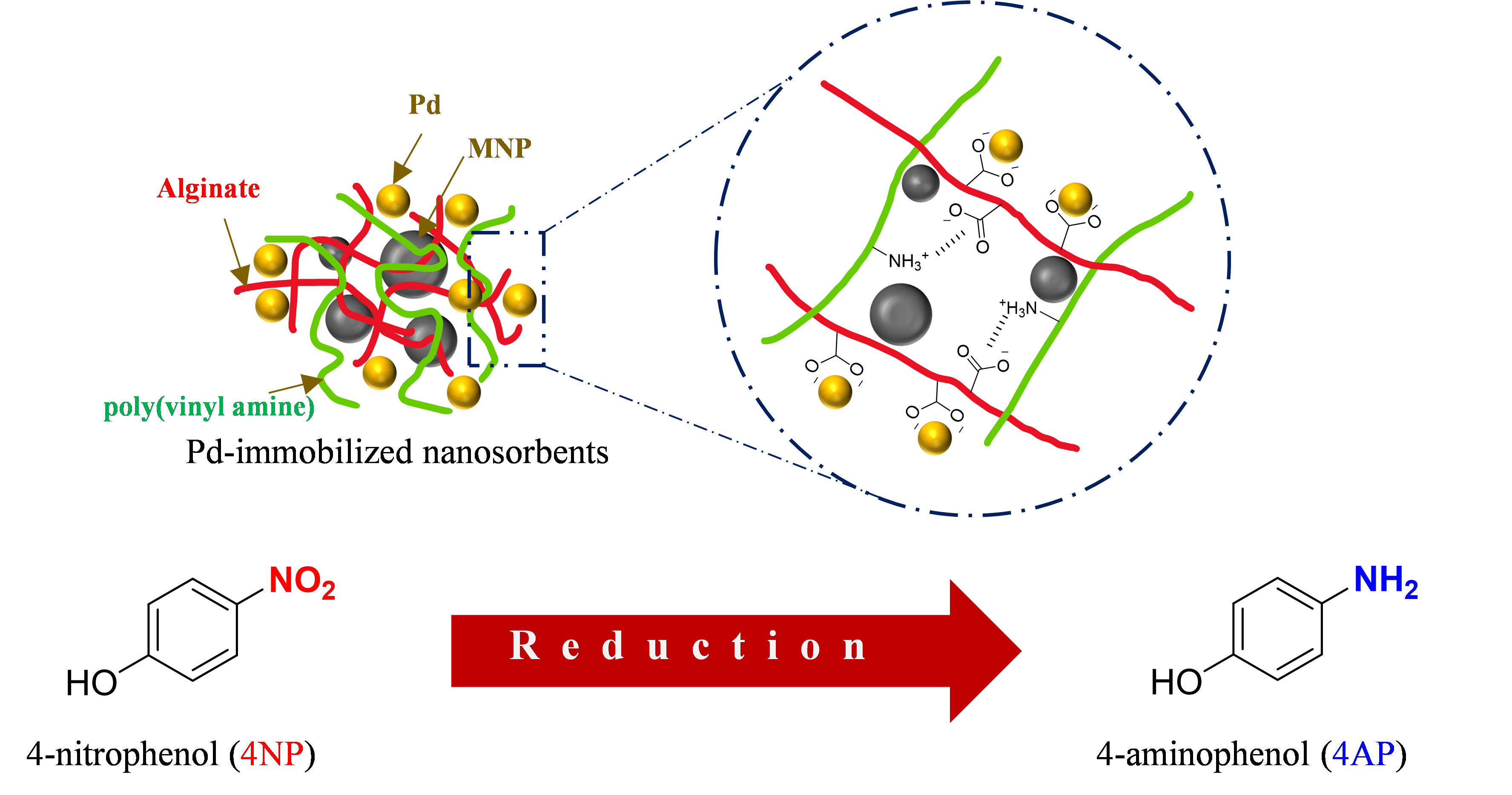 - Synthesis of alginate-based magnetite nanoparticle for the immobilization of Pd and its use as a catalyst for the reduction of 4-nitrophenol in water were presented