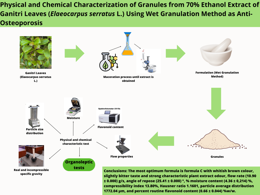 Physical and Chemical Characterization of Granules from 70 % Ethanol Extract of Ganitri Leaves (Eleocarpus serratus L.) using Wet Granulation Method as An Anti-Osteoporosis