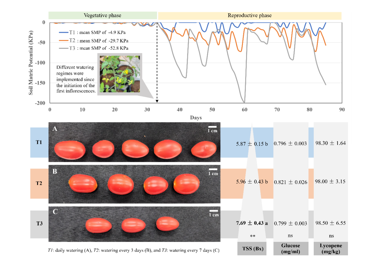 - Water deficits during the reproductive phase have a notable impact on tomato fruit quality