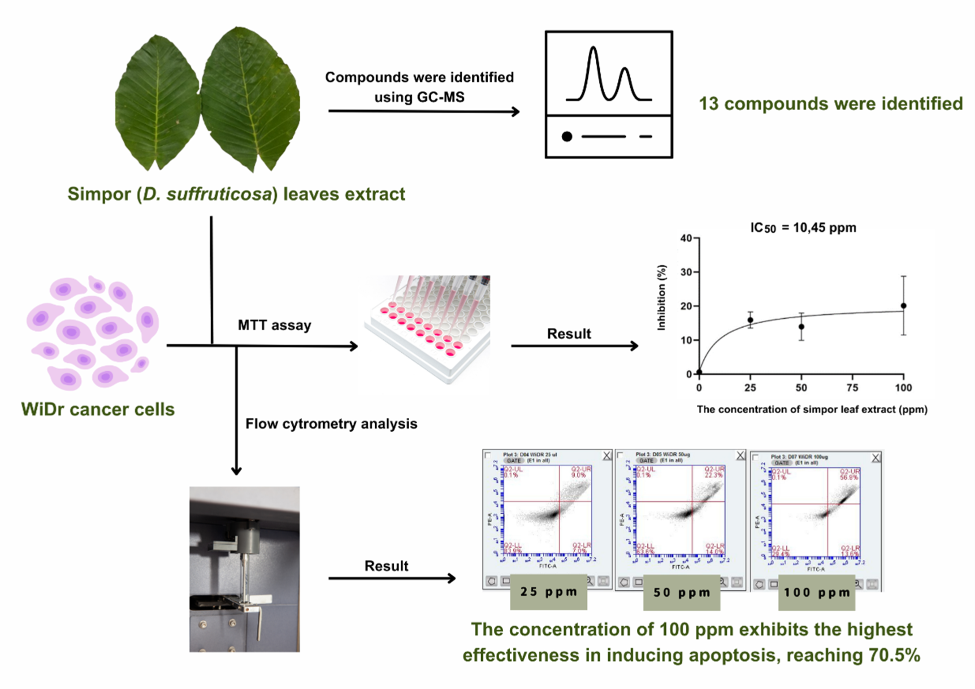 - This study shows that simpor leaf extract can induce apoptosis in WiDr colorectal cancer cells, with the percentage of apoptotic cells increasing from 16 % at 25 ppm to 70.5 % at 100 ppm.