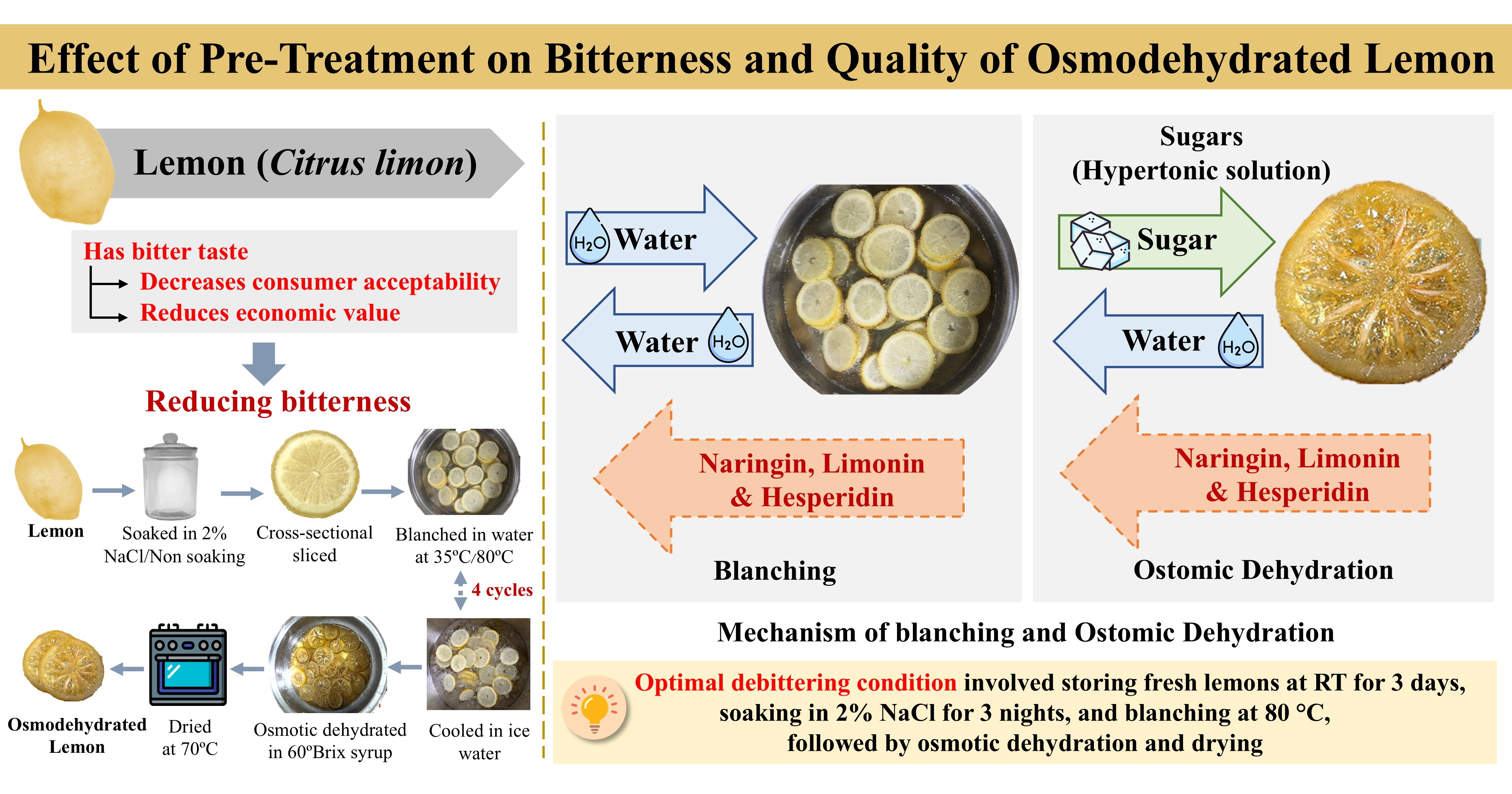 Lemon fruit, Osmodehydrated lemon, Bitterness, Naringin, Limonin, Hesperidin, BlanchingAbstract
