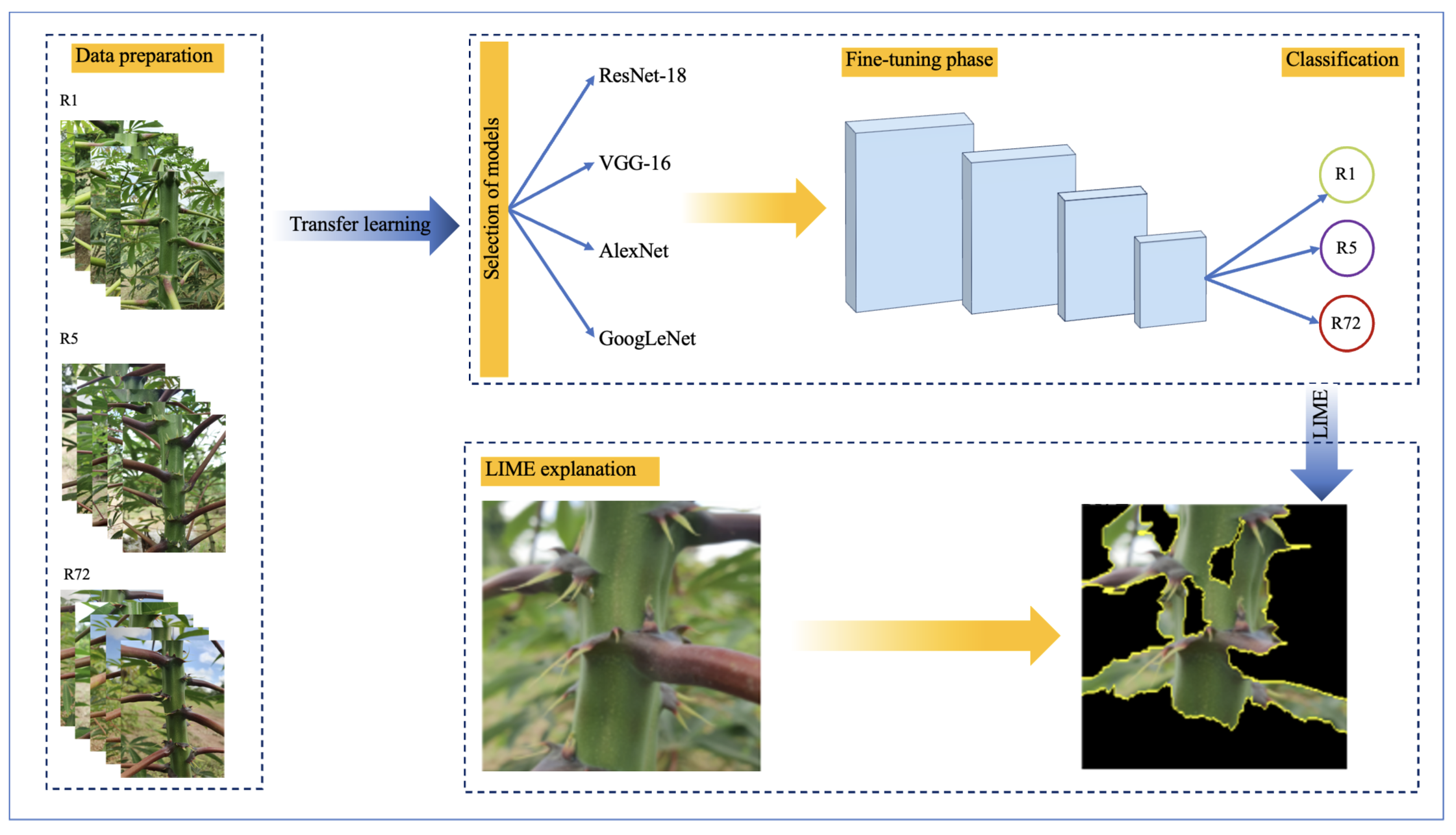 Cassava, CNN, Deep learning, Fine-tuning, Hybrid identification, LIME, PCAAbstract