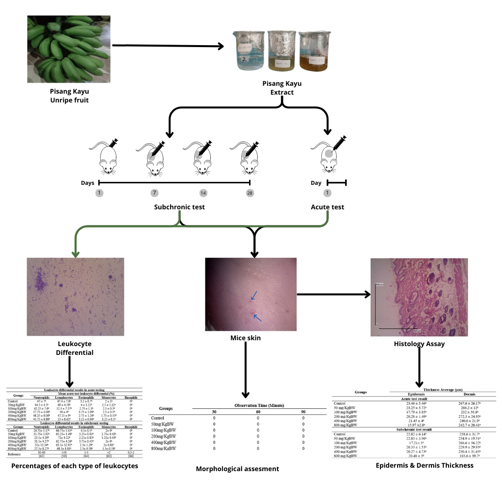 Effect of Musa paradisiaca L. var. Kayu Unripe Fruit Ethanol Extract on Leukocyte Differentiation and Skin Histology of Mus musculus