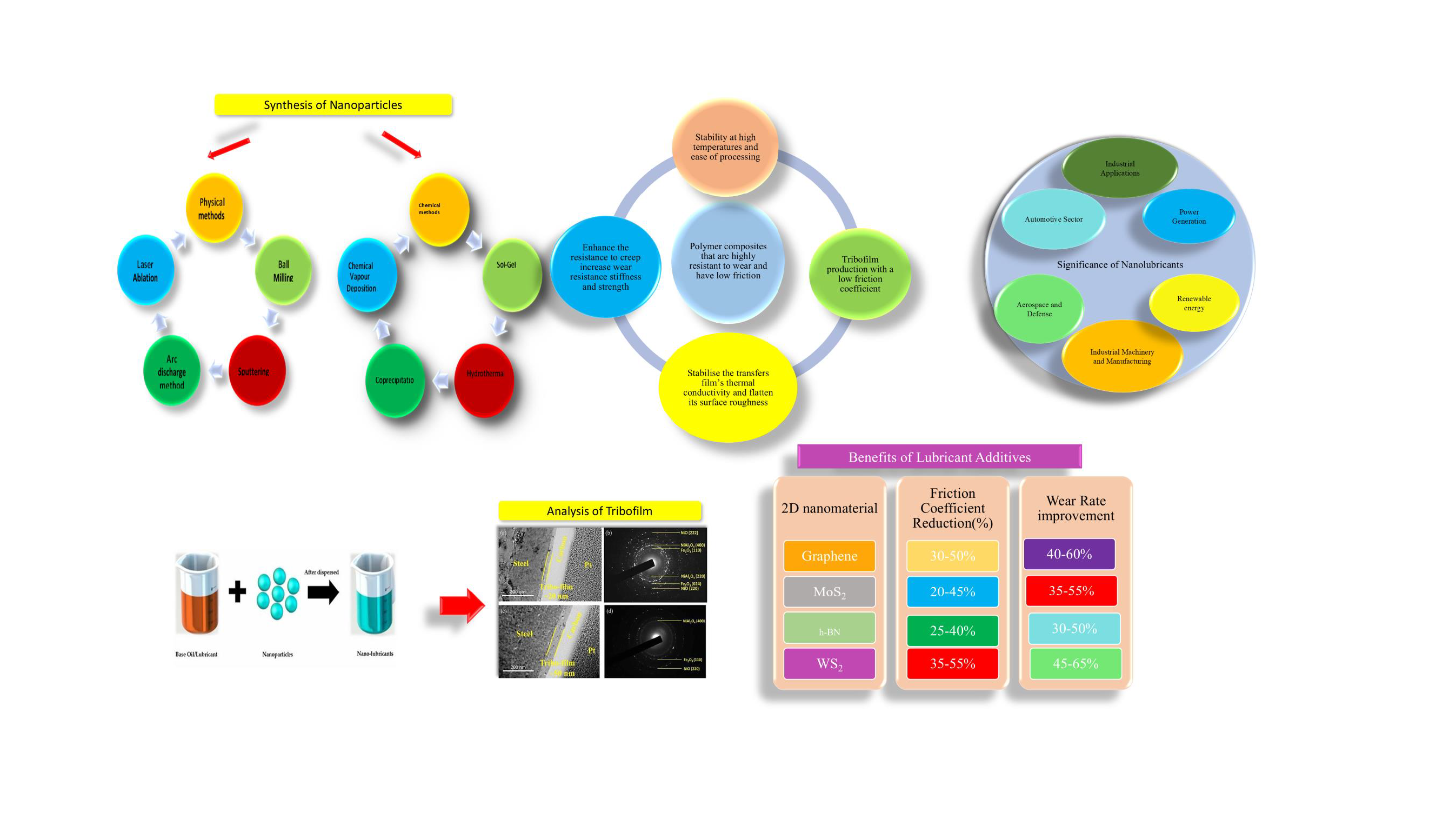 - Thinner layers and larger surface areas in 2D nanomaterials promote strong boundary films, reducing metal-to-metal contact under extreme conditions.