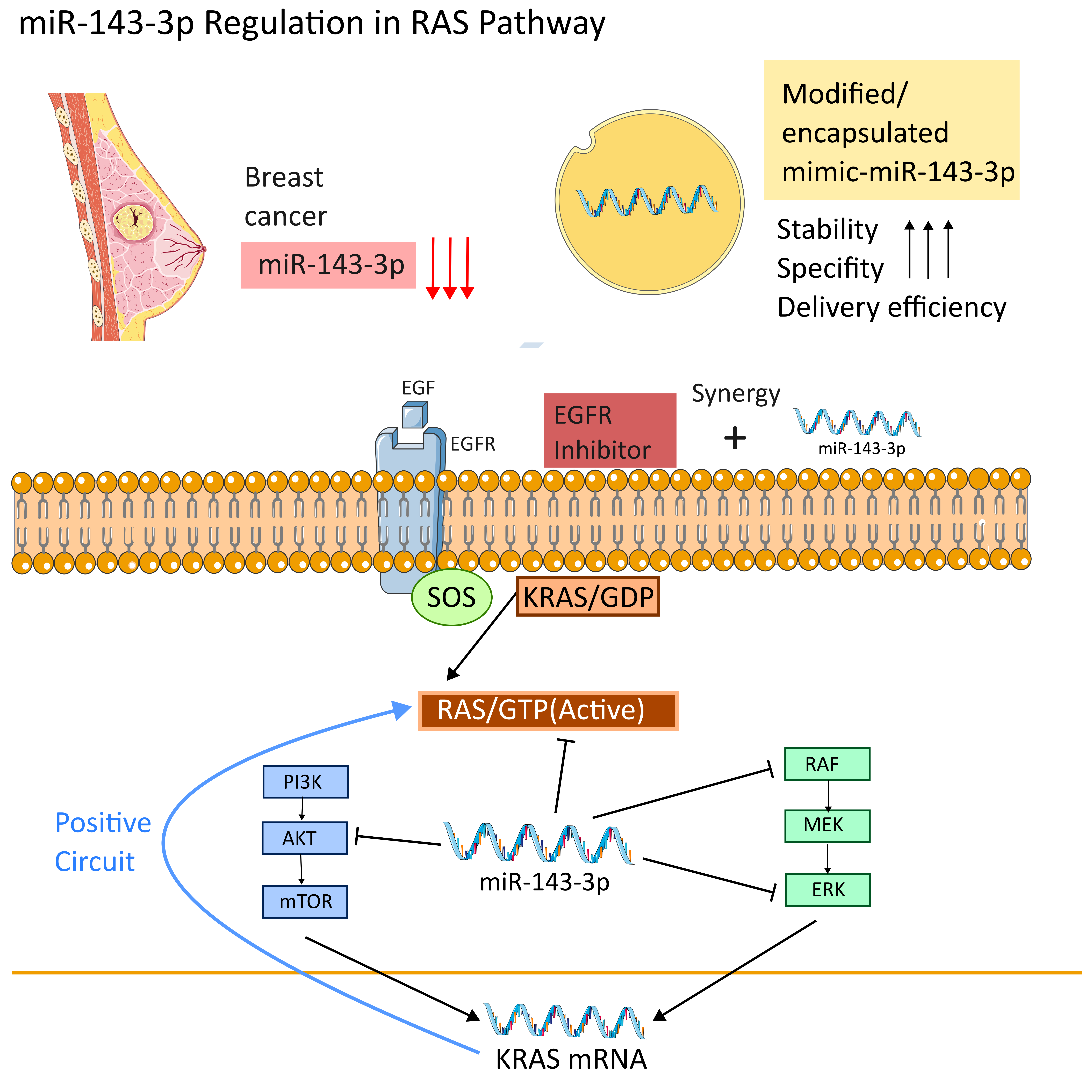 - This article reviewed how miR-143-3p targets KRAS and HRAS and influences breast cancer cell proliferation, apoptosis, and migration and development of miR-143-3p carrier agent.